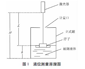 綜合考慮各方面要求,該設計方案選用雙頻激光干涉儀作為液位測量設備。如圖1所示,雙頻激光干涉儀的發射器豎直地置于儲罐頂部,激光透過儲罐頂部的玻璃照射到浮子上。浮子上的全反射棱鏡(錐體棱鏡)將照射來的激光束按原光路反射回雙頻激光干涉儀內的接收裝置。當液位變化時,浮子隨液位的上升而上升,隨液位的下降而下降。激光發射器到浮子的距離也就發生了變化。由此,利用雙頻激光干涉儀的測量原理測量液位。其液位高度計算公式為:h=H-L