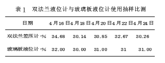我公司200m³液氨球罐上裝有一臺3851DP雙法蘭差壓液位計(量程:-62.04~20.79KPa)、一臺磁翻板液位計和一臺玻璃板式液位計。磁翻板液位計由于其腔體未能定期檢修使磁柱顏色不變,因而無法檢測;另一臺雙法蘭差壓液位計運行穩定,但測量值同玻璃板式液位計顯示有誤差。2014年4月儀表人員抽樣比測記錄數據,見表1所示。因老式玻璃板式液位計沒有詳細刻度,該數據為粗略目視值。