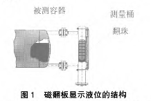 磁翻板是顯示液位的部分(見圖 1)。磁翻板內的翻珠內裝有柱狀的磁鋼,而所有的翻珠均勻布置于鋁制的卡槽內,當液位計中液位上升時,由于磁鋼受浮子內磁場的影響帶動翻珠由白色翻轉為紅色;反之液位下降時,翻珠由紅色翻轉為白色。這樣磁翻板在無需任何電源的情況下就可以反應出容器內液位的變化。