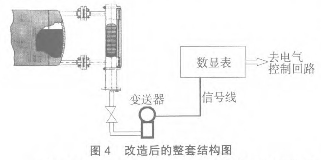 在外配1塊可輸出開關量接點的模擬量顯示儀表,這樣可實現液位的自動控制,集體的偏差多少可以在就實際進行整定試驗。整套測量系統的結構圖見圖4。