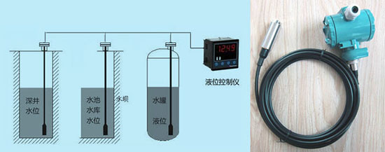 若設所測液體密度為P,液位高度為h,大氣壓為Po,重力加速度為g,則液體所受壓力P=pgh + p}。這時,為抵消大氣壓力變化所帶來的測量誤差,傳感器變送器部分采用導氣電纜將大氣壓力P。引入敏感兒件的負壓腔,進而使P = Pgh。顯然,若已知液體密度,通過測取壓力P就可換算出相應的液位高度。
