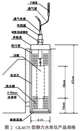 GeoKon 4675 型靜力水準儀是一種高精密液位系統(tǒng),該系統(tǒng)設計是 用于測量多點相對沉降的系統(tǒng)。在使用中,一系列的傳感器容器均采用PVC 液管聯(lián)接,每一容器的液位由一精密振弦式力傳感器測出,該傳感 器內(nèi)有一個自由懸重,一旦液位發(fā)生變化,懸重的懸應浮力即被傳感器感,精確測出小至 0.025mm 的垂直變化。在多點系統(tǒng)中,所有傳感器的垂 直位移均是相對于其中的一點,該點的垂直位移是相對恒定的或者可用其它人工觀測手段準來確定。
