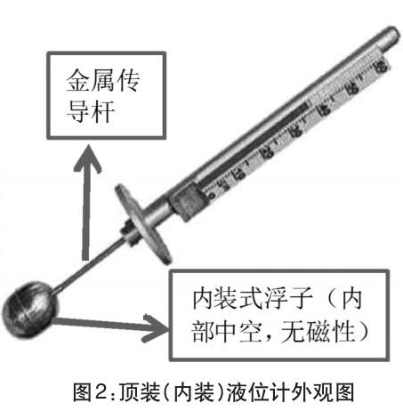 該區(qū)塊集氣站使用的是地埋污水罐,主要作用是對集氣站內(nèi)生產(chǎn)污水進行沉降。在運行過程中,燃油液位計故障導致顯示數(shù)據(jù)不準,一方面對污水液位情況掌握不準確,另一方面會出現(xiàn)不安全因素,甚至安全事故。該井區(qū)地埋污水罐使用的液位計為頂裝式磁翻板(磁浮子)液位計,根據(jù)液位計磁性材質(zhì)所在位置的不同燃油液位計也稱為內(nèi)裝式磁翻板液位計。