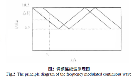 信號反射頻率與發射頻率間的差頻為:△f =kt (7)