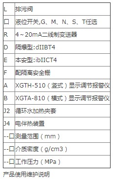 介質(zhì)粘度: ≤0.4Pa.s,對(duì)于粘度大的介質(zhì)或測(cè)量溫度低時(shí)易結(jié)晶的介質(zhì),可選用加熱夾套型液位計(jì)