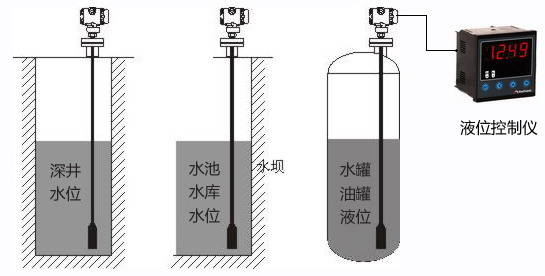 液位計應(yīng)安裝在靜止的深井、水池中時,通常把內(nèi)徑Φ45mm左右的鋼管(不同高度打若干小孔,以便水通暢進入管內(nèi))固定于水中,然后將靜壓投入式液位計放入鋼管中即可使用。變送器的安裝方向為垂直,投入式安裝位置應(yīng)遠離液體出入口及攪拌器。在有較大振動的使用場合,可在變送器上纏繞鋼絲,利用鋼絲減震,以免拉斷電纜線。測量流動或有攪拌的液體的液位時,通常把內(nèi)徑Φ45mm左右的鋼管(在液體流向的反面不同高度打若干小孔,以便水通暢進入管內(nèi))固定于水中,然后將靜壓投入式液位計放入鋼管中即可使用。 濕度傳感器探頭 , , 不銹鋼電熱管 PT100 傳感器 , , 下圖為不同工況下的投入式液位計的安裝方式: