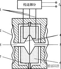 1.導線;2.隔離膜片;3,充灌液;4.固定電*; 5.測量膜片;6.剛性絕緣體(陶瓷);7.浮動膜片圖