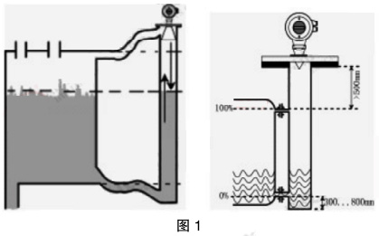 如圖1所示,導波雷達液位計是依據時域反射原理(TDR)為基礎的雷達液位計,雷達液位計的電磁脈沖以光速沿鋼纜或探棒傳播,當遇到被測介質表面時,雷達液位計的部分脈沖被反射形成回波并沿相同路徑返回到脈沖發射裝置,發射裝置與被測介質表面的距離同脈沖在其間的傳播時間成正比,經計算得出液位高度。某電廠經過技術改造采用波導雷達后,液氨液位波箱現象消失,儲罐運行良好。
