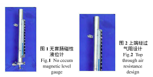 ③ 測量結果誤差較大。現在正逐漸選用基于磁耦合原理設計的磁翻板液位計代替玻璃板液位計,此液位計是基于阿基米德定理,磁性浮子在液體中產生浮力,根據磁鐵同性相斥,異性相吸的性質制成。但傳統的磁翻板液位計也存在一些弊端,如其下端浮子腔為盲腸結構,設備盲腸在石油石化系統是1個大的安全隱患,介質腐蝕物的積聚對該處焊縫產生應力腐蝕開裂,介質中的水分在該處沉降,冬季有產生凍凝的風險,這些隱患時刻威脅著企業的安全。